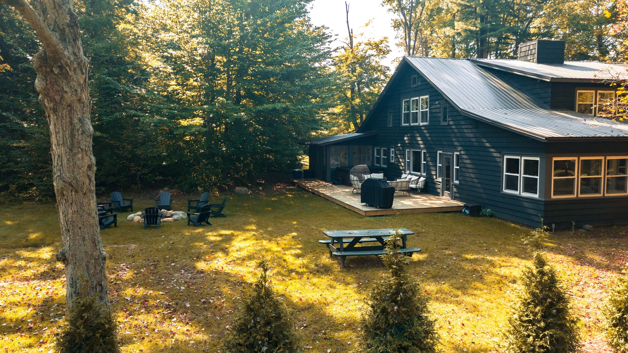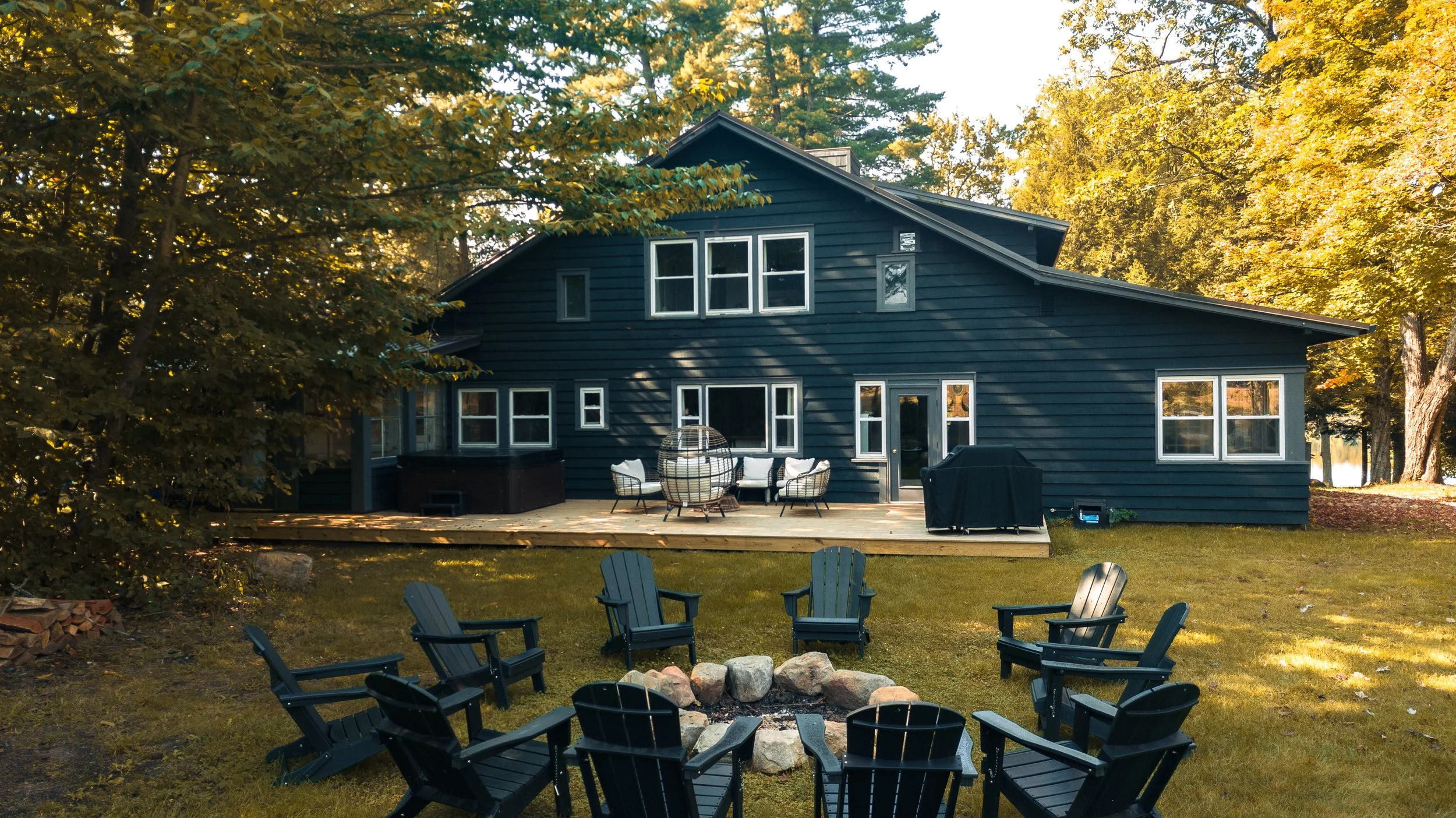With 9.5 bedrooms and 9 bathrooms, Grace Manor is designed to accommodate large groups of up to 20, making it an ideal space for retreats, friend trips, and family escapes. The large private yard with a wraparound front porch overlooking Lake Vanderkamp, a large back deck with private hot tub, a fire pit and outdoor games, offers the perfect setting for gatherings, reconnecting, and disconnecting any time of year.